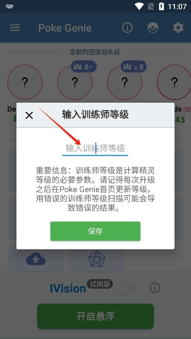 2、在开启悬浮功能时还需要输入训练师等级,随即点击“保存”。