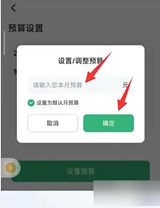 3、在弹出的预算设置窗口中,输入当月的计划支出总额。