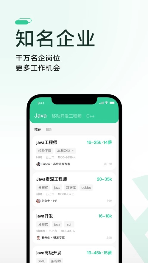 一起Hi聘是乐班班(北京市)高新科技有限责任公司开发的优质手机求职招聘平台,平台每日更新大量工作机会,拥有海量职位资源,既能助力企业招纳合适人才,也能帮助求职者找到理想工作,感兴趣的朋友不妨来体验使用!!