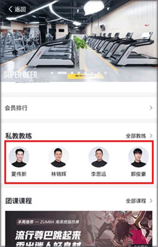 2、 进入该场馆的具体介绍页后,可从教练列表中选择一位合适的私人指导。