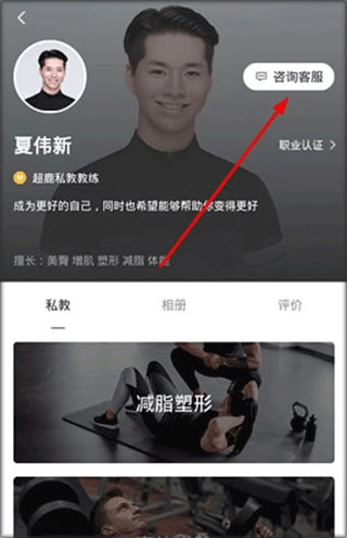 3、 最后查看这位私人指导的详细资料页,并点击页面右上角的客服联络键完成预约。