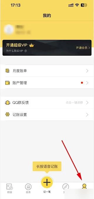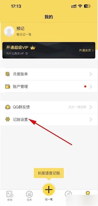 2、在个人配置页面中找到记账管理选项,点击进入详细参数设置菜单。