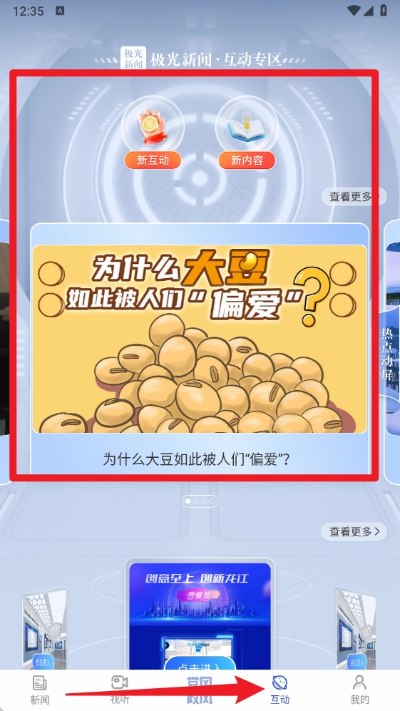 5、点击底部菜单中的“互动”选项,进入互动专区后,你可以参与问答活动、话题讨论,还能查看新的互动信息与内容。