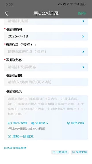 1、读懂儿童平台配备儿童行为观察记录与分析工具,支持文字、图片、视频等多元记录形式。系统可自动生成可视化的发展评估报告,助力教师以科学方式解读幼儿的成长轨迹。