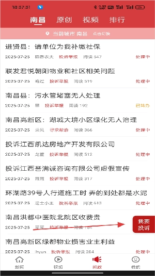 1. 打开赣州头条App,点击底部导航栏的【问政】入口。