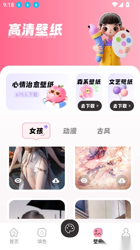 分笔画让用户轻松进行绘画创作,还有超多教程可学习,方便用户完成简单填色,打造创意新颖的画作,更好地自由创作,以此享受沉浸式的绘画体验,同时应用还提供海量高清壁纸资源,更多精美壁纸可供选择,用户可随心筛选。