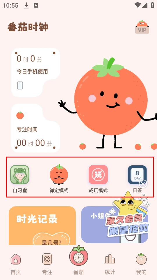 2、进入主界面后,可根据需求选择对应模式,包括自习室、禅定模式、戒玩模式等,不同模式适配不同专注场景;