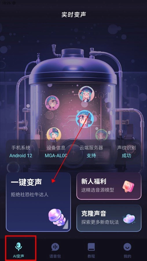 进入软件,AI变声模块中,点击一键变声