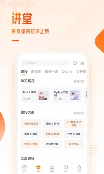 来自谷歌、脸书、阿里巴巴、腾讯等知名企业的行业大咖亲自授课,内容涵盖职场晋升的核心法则、商业变现的底层规律、求职面试的实用技巧、薪资谈判的加薪宝典以及各领域的专业知识,让你近距离学习一线专家们的实战经验与成功方法。