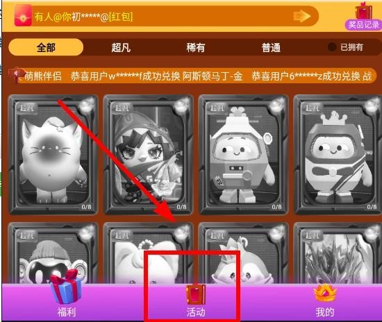 4.点击页面下方的【活动】选项,挑选对应的活动参与入口,点击进入活动页面。