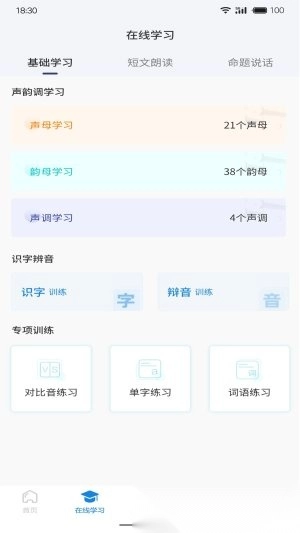 5.选择不同类型的课程学习,还支持定制化训练,精准提升普通话水平