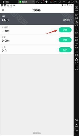 2、进入到我的界面中,找到红包消费界面,直接进去即可