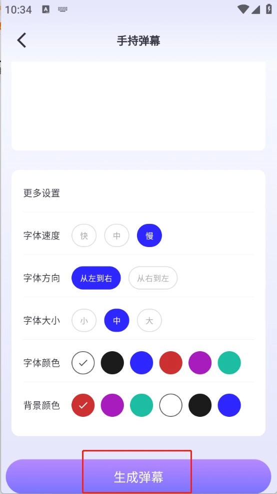 4、直接在输入框输入文字,接着选择字体大小、颜色和弹幕背景等设置,点击“生成弹幕”按钮就可以了。