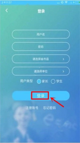 1、第一步是打开达美嘉家长端,在登录页面选择“家长”身份类型;如果还未注册账号,需先以家长身份完成注册操作。