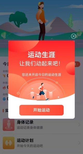 1、大家在软件打开后就有开始运动的页面提示,点击开始运动。