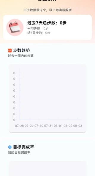 3、在统计板块,大家可以查看自己过去七天的首个总部署情况,还有步数变化趋势。