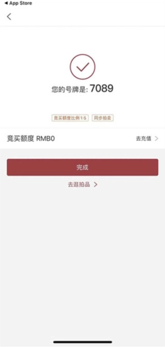 3、完成上述一系列操作后,你就能拿到一个拍卖号码牌,但此时还无法直接参与竞拍。你可以点击充值按钮,充值相应额度。目前参与中国嘉德的网络竞拍,最低需缴纳5000元保证金,通过微信或支付宝直接付款即可。若竞拍失败,该费用会原路退回;若竞拍成功,则需补齐尾款。