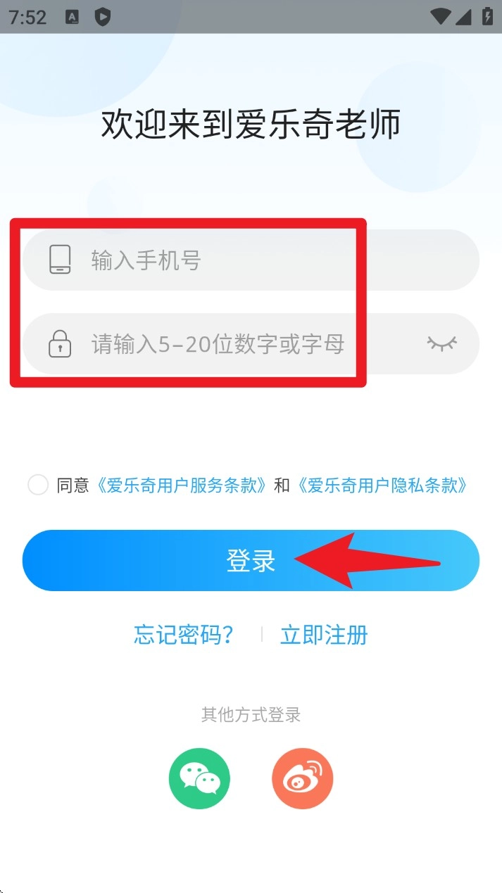 2. 若您已有账号,可在登录页面输入手机号与密码后点击登录,也能通过微信、微博等渠道快速登录。
