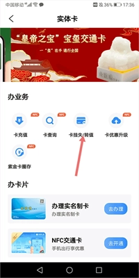 在新打开的页面里找到【卡挂失】选项并点击,接着办理实体卡挂失手续,待挂失成功后,卡内资金就会自动按原路径退回至用户的充值账户中。