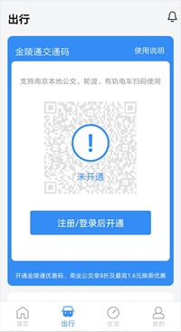 3、若没有实体卡,可在首页点击【金陵通交通码】申请电子公交卡,申请成功后就能在线完成充值。