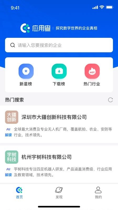 应用查是一款助力用户深入洞察行业发展趋势的软件,依托海量企业与应用资源库,用户可轻松检索到所有想了解的企业信息,全面掌握企业详情与经营状况,一站式满足用户对企业信息的需求,助力探索新机遇,保障业务稳健发展;平台提供详尽的企业资料,涵盖注册信息、数字资产、分析报告等多维度内容,帮助用户高效评估企业状况,便于开拓新市场。此外,应用查还设有各类应用榜单,用户能直观查看不同应用的排名情况、开发者薪资水平,及时了解各行业热门软件,同时实时把握企业发展动态,以便快速抓住市场机会。