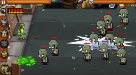 植物横扫僵尸是青岛大蜥蜴娱乐有限公司为《植物大战僵尸》题材游戏爱好者打造的萌化版射击塔防游戏。与以往躲在后方种植植物不同,这次你要为植物配备武器,开启一系列战斗。游戏中会遇到普通僵尸、路障僵尸、铁桶僵尸等各类僵尸,只有通过精准的射击角度,才能轻松消灭它们。