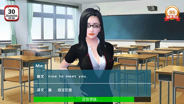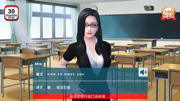 3、当剧情推进到关键节点时,玩家需点击下方的红色长条按钮开启录音功能,并朗读出上方显示的英文对话语句。
