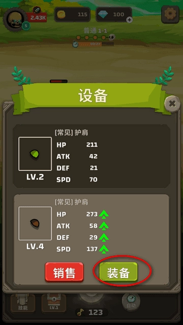 2、箱子中的装备需要根据级别及好坏来进行装备或者是销售。