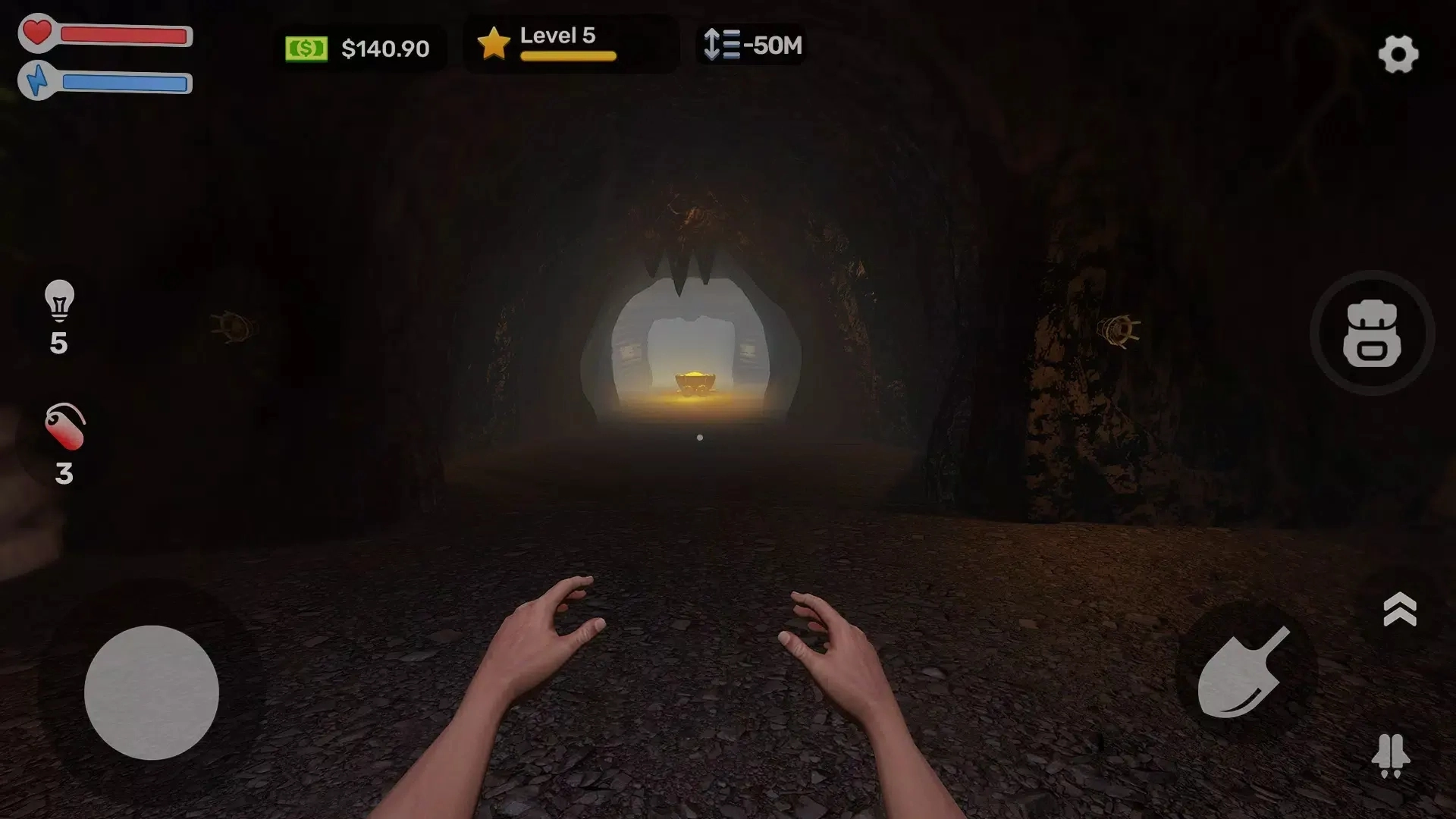 2.升级装备如铲子、头灯、背包,提升挖掘效率与生存能力。