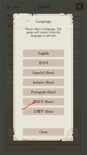 3、接着选择简体字选项,重启游戏之后就能切换为中文版了。