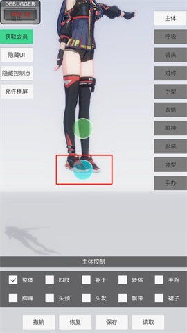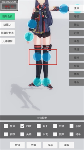 3、点击四肢,蓝色的球可以控制四肢的运动。