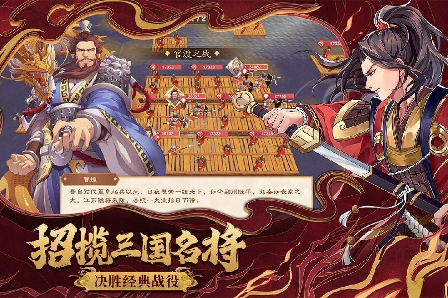 上百个真正还原三国历史中的战役关卡,火烧新野,官渡之战,三英战吕布,带你重温三国豪情时代。