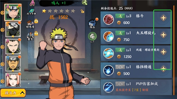 玩家能够借助忍术结晶和防御源石来为忍者提升星级,进而增强其各方面的属性。