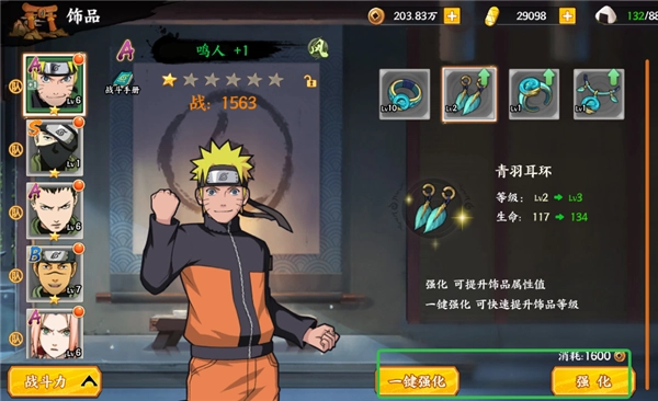 忍者佩戴的各类饰品通过突破能够显著增强生命等属性。