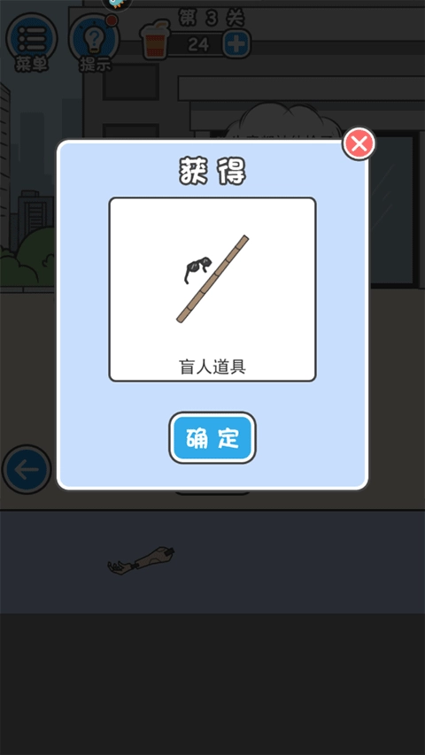 4、这条街上的乞丐不止你一个了,同行之间竞争很激烈,你得想办法比过其他乞丐才行。你可以滑动场景,然后点击垃圾桶上的墨镜、假肢和拐棍,把它们组合成盲人道具。最后把所有这些东西都拖到乞丐身上,就能通过这一关了。