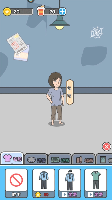 1、游戏采用闯关模式,讲述的是创业失败后流浪街头的你,努力想办法赚钱谋生的故事。