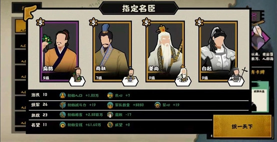 搭配名臣:扁鹊、商鞅、姜尚、白起。