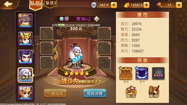 评测:获取难度高,十连随机获得。优点:技能为全体离间,在特定关卡有奇效。可以玩各种骚套路。缺点:娱乐性强于实用性,武将属性低,技能命中率一般。
