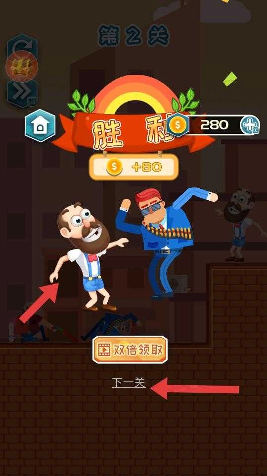 4、成功完成营救后,界面会显示胜利提示,同时获得金币奖励,此时可以选择双倍领取金币,或者点击进入下一关,继续执行新的营救任务。