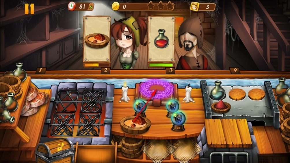 作为模拟经营游戏的爱好者,《烹饪女巫》最让我着迷的点在于它把充满奇思妙想的魔法元素融入了烹饪经营的玩法中——当我用“闪电魔法”给煎蛋加速时,看着鸡蛋表面迸发出电光、慢慢变焦黄的样子,既觉得荒诞有趣,又能让人彻底放松;而给幽灵制作“透明汤”时,得先施展隐身术让食材变得透明,这种独特的“魔法操作”让每一道菜品的制作过程都像在演绎一场生动的小剧场。
