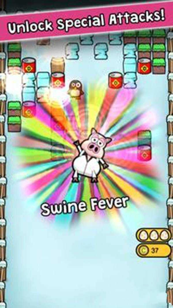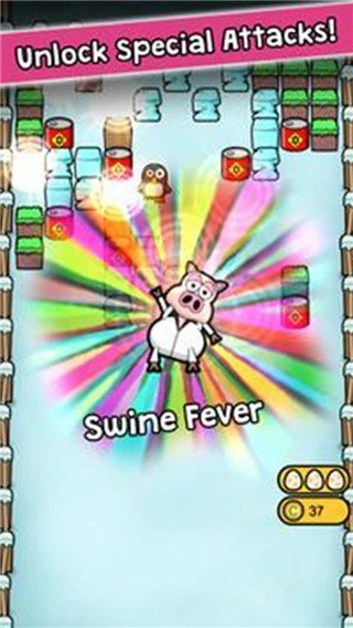 1、发射鸡蛋破坏障碍物,击败受感染的动物,提升您的鸡蛋武器等级