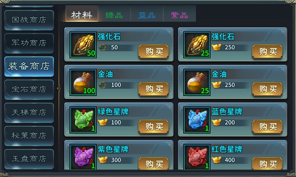 然后用低级星牌兑换高级星牌,再用高级星牌兑换装备碎片。商店中能获取的最高等级星牌是红色星牌(需用紫色星牌兑换),而金色星牌仅能通过购买充值礼包获得。