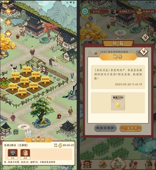 5、完成梧桐树广告得到阳光(增加金币产量)
