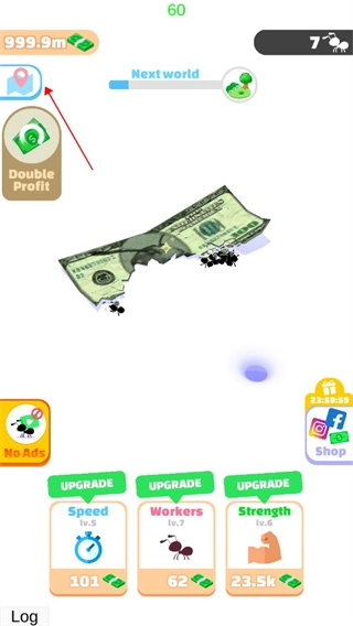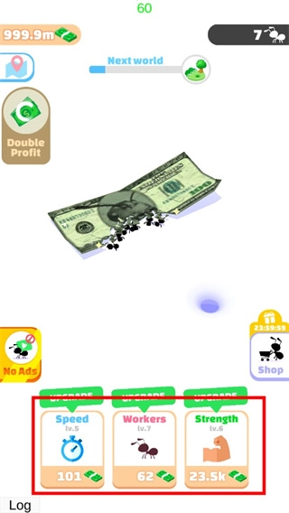 1、首先大家进入小蚁帝国游戏,就能看到蚂蚁要搬运的物品,可能是食物,这次小编遇到的是钞票。