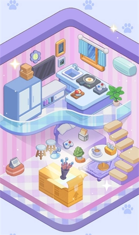 3、装饰空间并营造舒适氛围,每开启一个盒子都能解锁全新内容,把物品摆放至合适的位置。