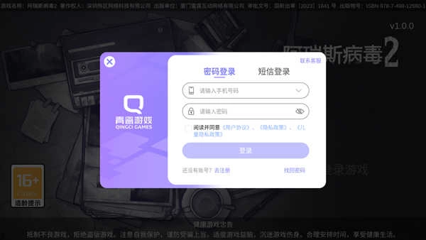 1、打开阿瑞斯病毒2正版,新玩家需先注册账号登录游戏;
