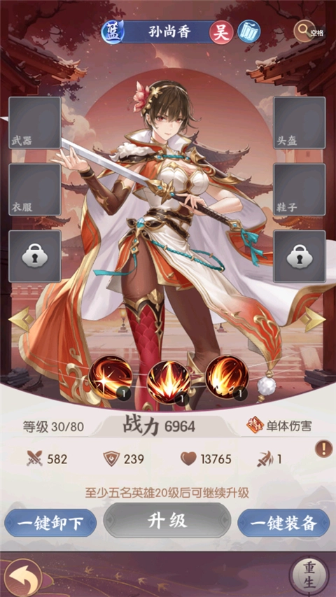 3、点击角色可以进行升级、装备武器