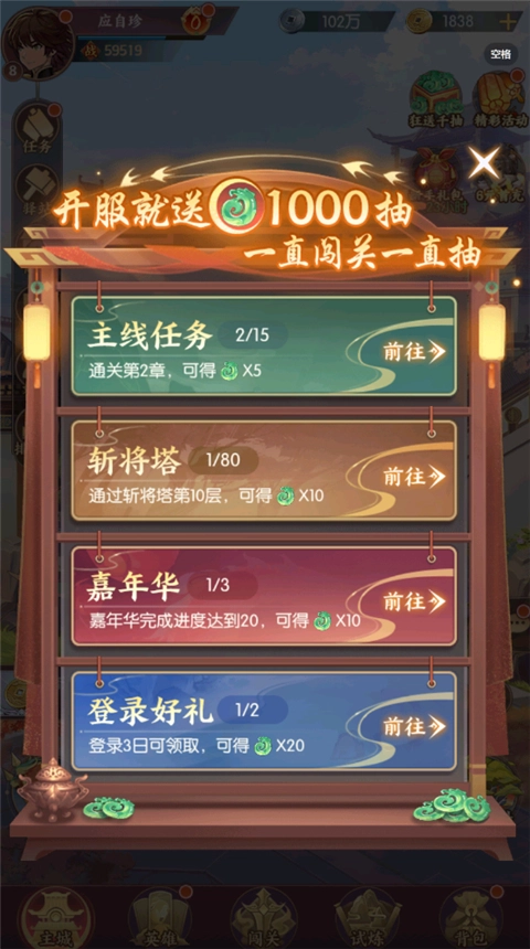 「开服1000抽」一直闯关一直爽!