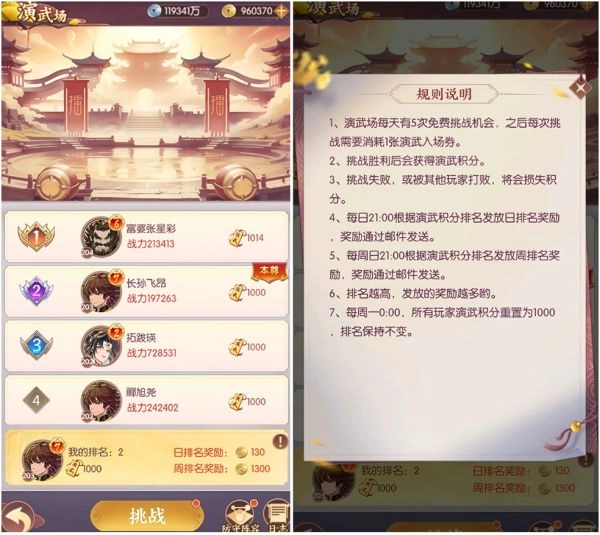 各位主公可得留意演武场的规则呀,每天的免费挑战次数是有上限的,等5次机会用完之后,就得消耗演武入场券才能继续挑战啦。