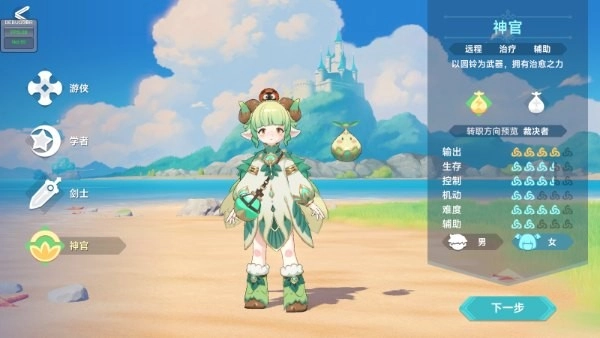 以圆铃为武器、身负治愈之力的神官,属于远程法术辅助职业,能为队友提供治疗,是团队中不可或缺的一员。只要有神官在,队伍里的成员便能安心专注于各自的职责。到了后期,大家可以选择转职为输出能力更强的【裁决者】,或是转向生存与辅助能力更突出的【大贤官】。